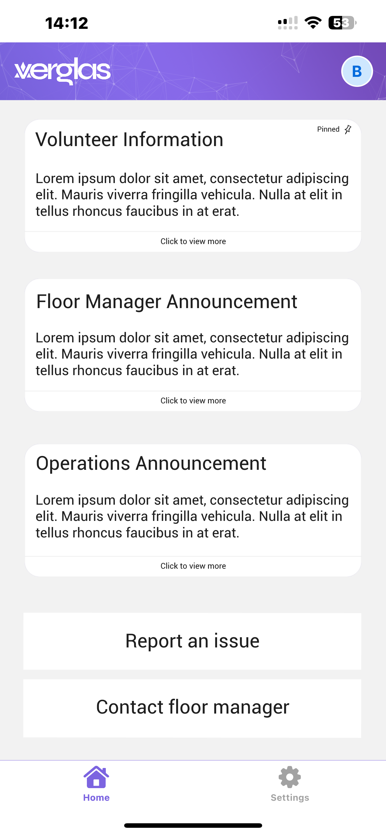 Verglas Coms was an app that I was developing in order to have stable communication between volunteers and event coordinators for a coding competition I help run called IglooCode. This App would have allowed everyone to download it on their phones, see any announcements that have been broadcasted by admins, see pinned information, send a message to their floor manager for help, and send a support message to report issues.